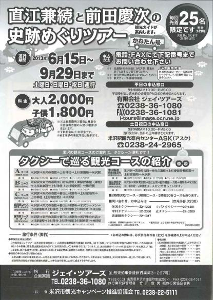 直江兼続と前田慶次の史跡めぐりツアー運行開始!:やまがたへの旅/観光協会