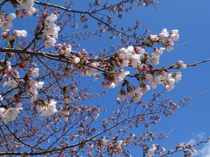 咲始めですが、御堀周りはまだまだつぼみが多く