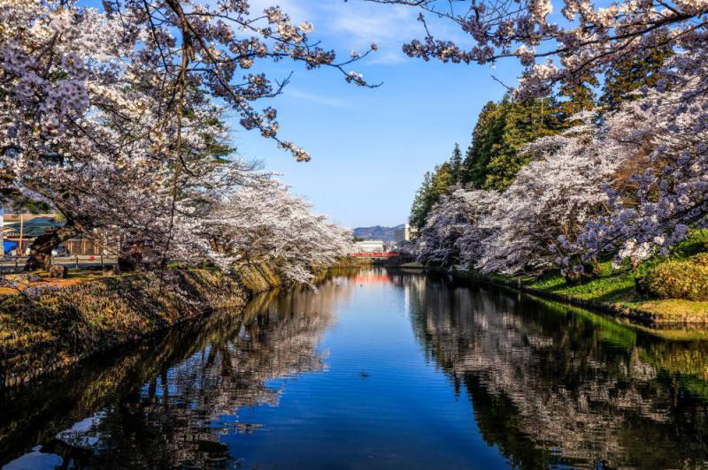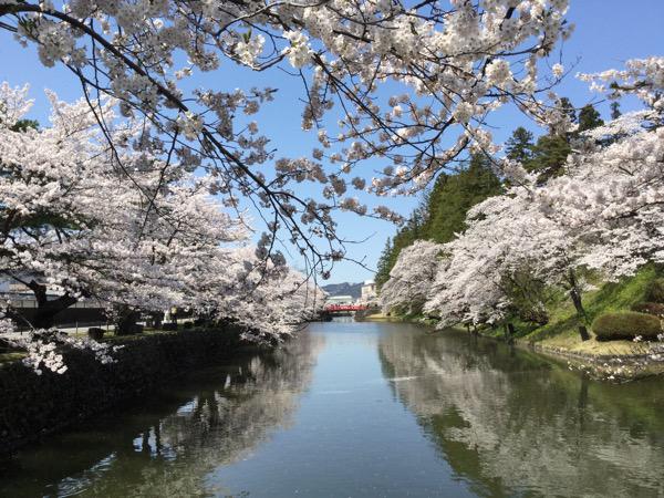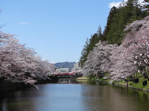 米沢市の松が岬公園の桜情報【画像は過去の画像です】山形県置賜地方には桜回廊、花回廊として、桜や花の名所がたくさんございます。米沢市の松が岬公園の桜も、お堀沿いに200本の桜が咲き誇る様子はとても綺麗です。お堀の水面に映る桜が更に美しさを際立たせます。今年は例年よりも雪が非常に多く、4月になっても寒い日が続いており開花予想も難しい状況ですが、米沢の松が岬公園の桜は4月13日前後に開花するのではないかと思われます。満開時期は、開花後の気温にも影響されますが通常開花より5,6日後ですので4月18日〜20日頃に満開になる予想です。この松が岬公園 上杉神社はお堀沿いに約200本もの桜ソメイヨシノが咲き誇る、置賜でも有数な桜の景勝地、写真撮影スポットです。特に、お堀に架かる赤い橋(菱門橋)を入れた桜の風景は、とても風情があってオススメです。※残念ながら菱門橋が昨年崩落してしまい、橋のところには立入禁止となっております。夕暮れ時も素晴らしくまた、桜が散った時に水面を染める花筏の様子もとても綺麗です。数年前には、この松が岬公園の桜の風景が絶景を通して日本の魅力を世界に届けるサイト「ZEKKEI Japan」の「プロカメラマンが絶賛する世界に伝えたい日本の絶景 春のZEKKEIアワード」に選出されました!「ZEKKEI Japan」「春のZEKKEIアワード」写真の撮影された場所は、上杉神社南側で『菱門橋と水面に映る満開の桜』が絶景と評されています。さらに夜にはライトアップも実施されさらに美しい風景を見せてくれます。ライトアップは 4月上旬〜5月上旬の予定時間は夕方18時〜21時まで昼、夕方、夜 様々な美しい風景をお楽しみください。これから開花までは不定期で更新いたします。参考までに過去の桜開花状況をご覧ください。 令和6年 開花4月9日 満開4月14日令和5年 開花4月2日 満開4月8日令和4年 開花4月13日 満開4月18日令和3年 開花4月5日 満開4月15日令和2年 開花4月9日 満開4月17日平成31年 開花4月15日 満開4月22日平成30年 開花4月7日 満開4月15日平成29年 開花4月17日 満開4月23日平成28年 開花4月 9日 満開4月15日平成27年 開花4月16日 満開4月22日平成26年 開花4月18日 満開4月25日平成25年 開花4月18日 満開4月28日平成24年 開花4月26日 満開4月29日平成23年 開花4月26日 満開4月29日平成22年 開花4月25日 満開4月30日平成21年 開花4月14日 満開4月18日 平成20年 開花4月18日 満開4月22日平成19年 開花4月18日 満開4月24日平成18年 開花4月26日 満開5月1日平成17年 開花4月26日 満開4月29日平成16年 開花4月14日 満開4月17日平成15年 開花4月17日 満開4月22日平成14年 開花4月9日 満開4月14日 平成13年 開花4月18日 満開4月23日平成12年 開花4月27日 満開5月1日平成11年 開花4月19日 満開4月24日平成10年 開花4月13日 満開4月18日平成9年 開花4月18日 満開4月23日平成8年 開花4月27日 満開5月2日