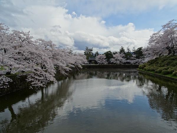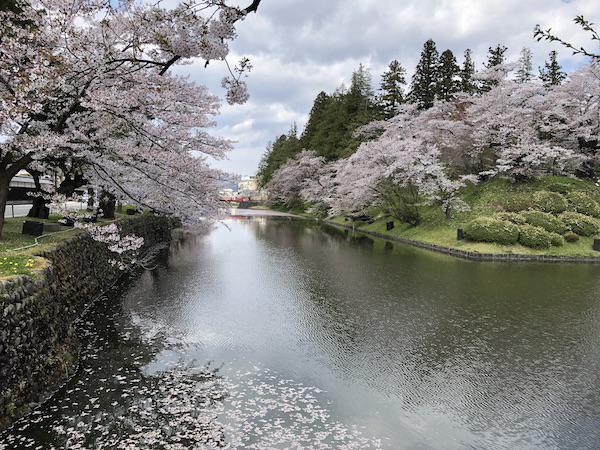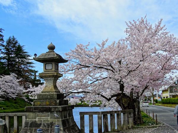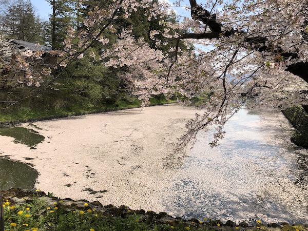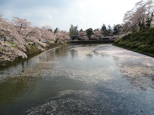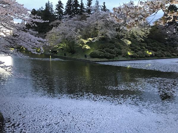 2020-4-29 上杉神社のお堀に浮かぶ桜