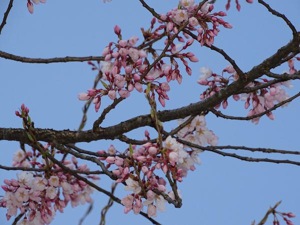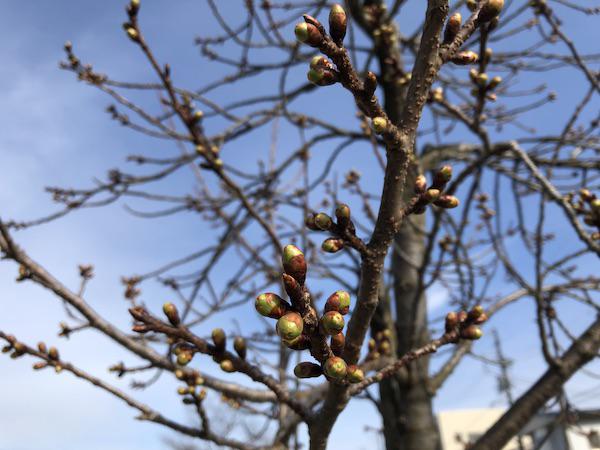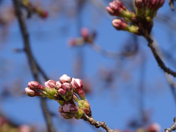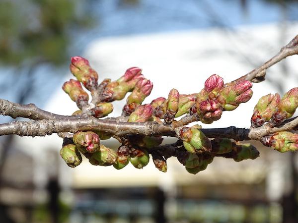 標準木はまだ蕾ですが、膨らんでピンク色です。もうすぐ開花です。