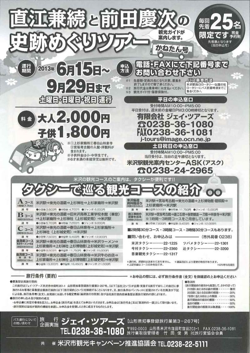 ▼直江兼続と前田慶次の史跡めぐりツアー運行開始!