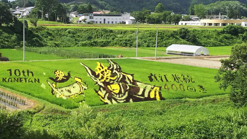 今回は昨年に引き続き公募を行い、9つの応募作品から選出された「直江兼続400回忌」(作成者:伊藤博昭さん(米沢市))とデビュー10周年を迎える米沢市のマスコットキャラクター「かねたん」を描いております。