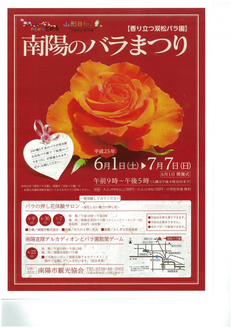 6月23日(日)の午前10時から、双松バラ園にて「南陽宣隊アルカディオンとバラ園散策ゲーム」が行われます。ご当地ヒーローと一緒に、バラ園で楽しみましょう!