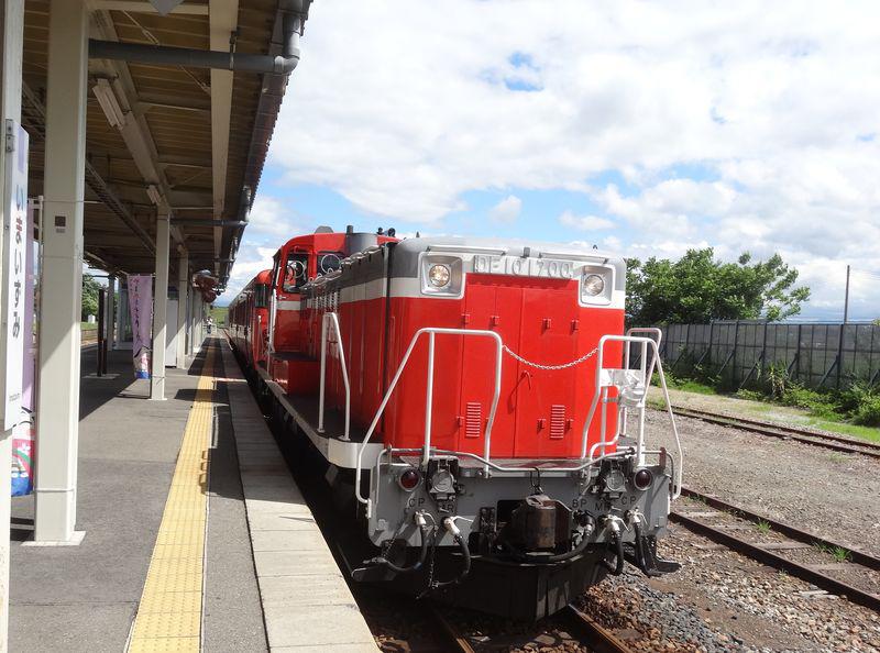 ディーゼル機関車(DE10)が牽引♪国鉄色の列車はさくらんぼ色ですてきでした。
