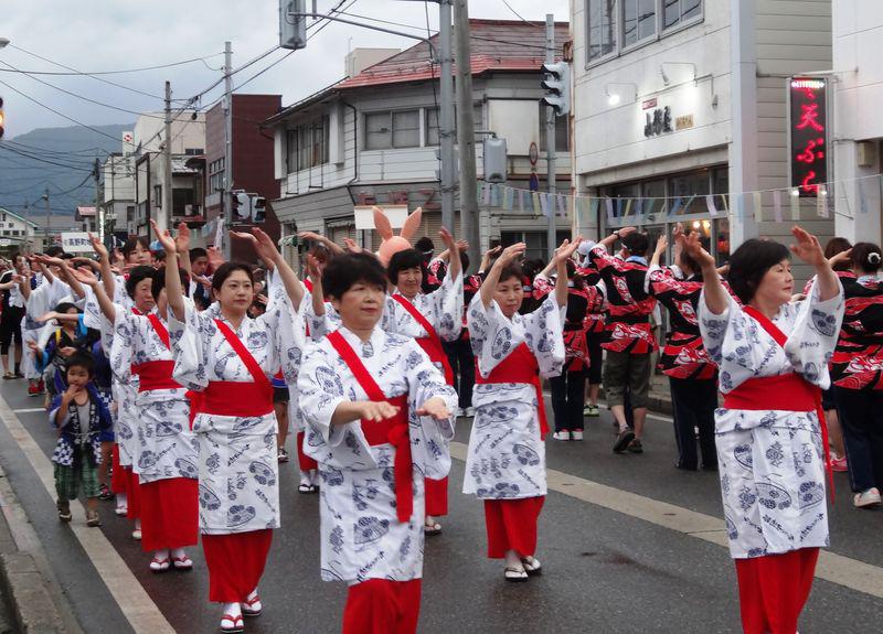 みなさんの素敵な浴衣姿!仮装したり、Tシャツの背中側に文字を入れての参加。色々工夫がみられ、掛け声もあり新長井おどりも市民のみなさんに定着してきましたネ(*^_^*)