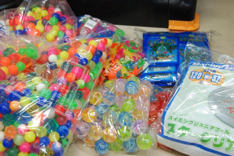いよいよ今週末、町民総合センター「あ〜す」で“いいでめざみの里まつり2013”が開催されます!我々、飯豊町観光協会は今年もスーパーボールすくいのブースを出して、ちびっこたちに笑顔をあたえるお兄さんになります♪現在、絶賛スーパーボールすくいの準備中ですヾ(@^▽^@)ノ例年準備している大中小のスーパーボール数千個はもちろん、恐竜、金魚、キャラもの取り揃えております。 今年の目玉はコレっ!!何!?∑( ̄Д ̄;) 水でうるかすとぉ〜… ぶよよ〜んと不思議な物体に(笑) これもスーパーボールすくいに入りますo(^▽^)o 今週の土曜日はいいでめざみの里まつりに遊びに来てね〜♪