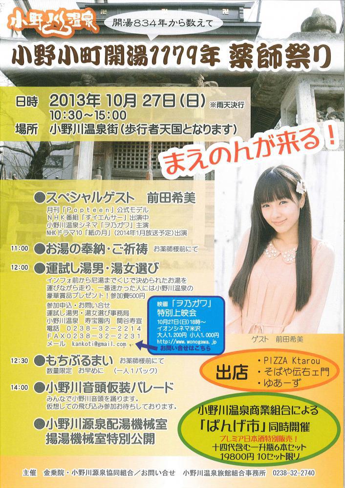 ぜひご来場ください。日時 平成25年10月27日(日) 10:30〜15:00場所 小野川温泉街(歩行者天国となります。)