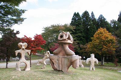 ▲こちらは「古代の丘」の土偶広場の様子です。紅葉した木はもちろんですが、色とりどりの落葉もキレイ!