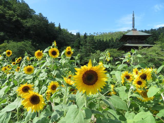 安久津八幡神社(歴史公園)のひまわりが満開となりました。夏空には、満開のひまわりが似合います。皆さん、是非いらしてください。