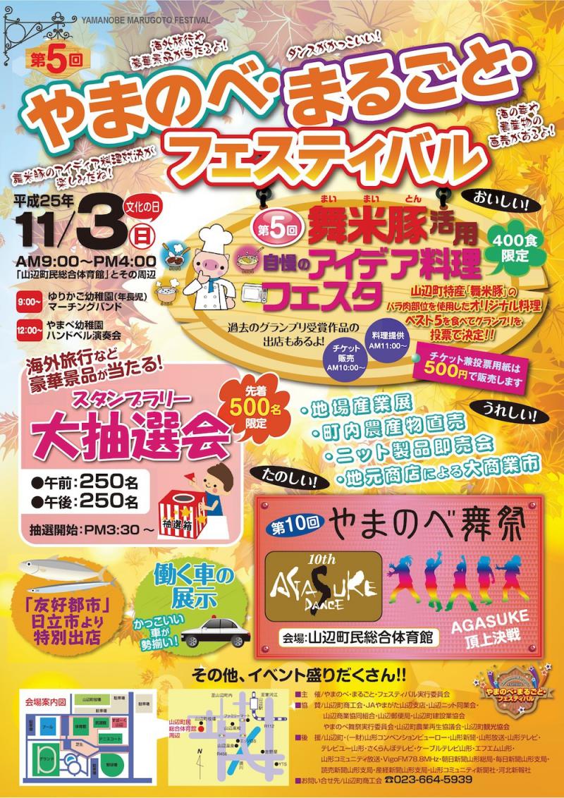今度の日曜日(11月3日)に、山辺町の魅力を丸ごと味わえる『第5回やまのべ・まるごと・フェスティバル』が開催されます。