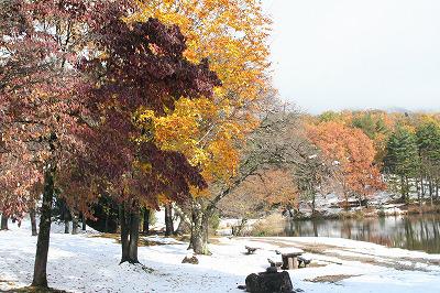 ☆市内でも降雪量が多い「西根地区」では、雪が数センチ積もっていました。紅葉と雪が同時に楽しめるのはこの時期だけですよ〜!