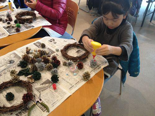 自然素材を飾りつけ、オリジナルのクリスマスリースを作ります。