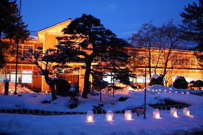 ▼長井小学校第一校舎ライトアップ点灯式【ながい雪灯り回廊まつり】