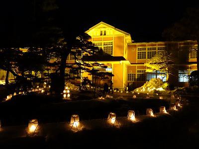 ▼ながい雪灯り回廊まつり2014 長井小学校ライトアップ