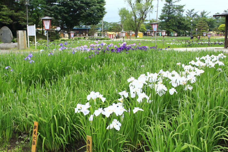 長井古種アルバム長井あやめ公園のシンボルである「長井古種」34種を日々の更新で少しずつですがご紹介していきます(ˊᗜˋ*)あやめ公園解説 あやめ公園の歴史は、明治43年に長井市横町の金田勝見という人物が清水湧く野川の川べりに茶店を開き、そこに数十株の花菖蒲を植えたところから始まります。 明治45年には国鉄の誘引をはかり、杉林を伐採した空き地に花菖蒲を植え、現在の公園の原型が作られましたが… その後の昭和18年、第二次世界大戦時に極度の食糧難からあやめ公園は増産畑へと姿を変えることとなります。抜き取られたあやめの苗は町内へ配布され、これを惜しんだ方々があやめの苗を保存し、戦争が終わって落ち着きを取り戻したころ、「あやめ公園」の復興へとりかかり、昭和26年頃にようやく見れるまでに復活したのです。 昭和37年には日本花菖蒲協会の井上清会長、平尾秀一理事長など30余名が来園、この時後に「長井古種」と呼ばれる非常に珍しい花菖蒲が発見されました。昭和38年には明治神宮から江戸系花菖蒲20種200株を譲り受け、その協力があって見事な復興を果たし、現在では3.3ヘクタールの面積に500種100万本の花菖蒲が植栽される、日本でも有数の花菖蒲の公園となっています。 山形デスティネーションキャンペーン「山形日和」本年度はJR6社と地元の観光関係者や自治体が一体となって展開する