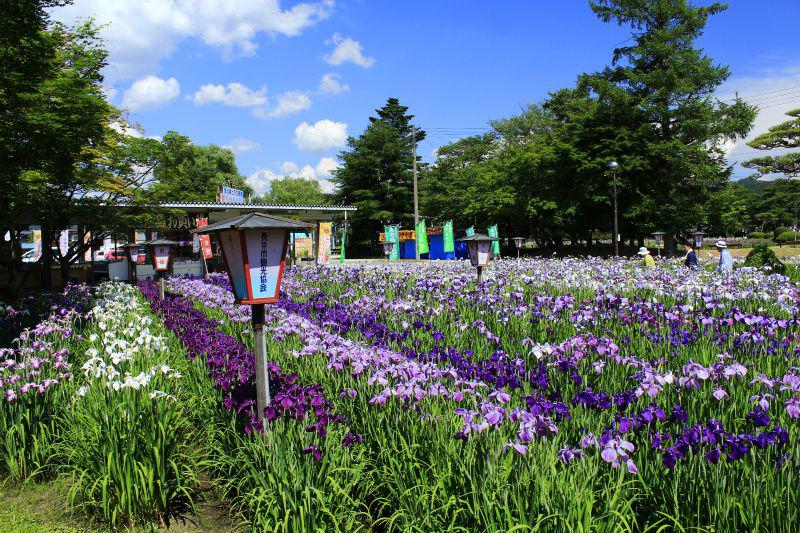 ▲現在の園内の様子。青空にあやめが映えますねー(∩´ヮ`∩)