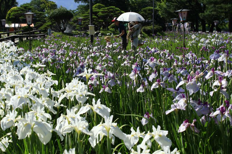長井古種アルバム長井あやめ公園のシンボルである「長井古種」34種を日々の更新で少しずつですがご紹介していきます(ˊᗜˋ*)あやめ公園解説 あやめ公園の歴史は、明治43年に長井市横町の金田勝見という人物が清水湧く野川の川べりに茶店を開き、そこに数十株の花菖蒲を植えたところから始まります。 明治45年には国鉄の誘引をはかり、杉林を伐採した空き地に花菖蒲を植え、現在の公園の原型が作られましたが… その後の昭和18年、第二次世界大戦時に極度の食糧難からあやめ公園は増産畑へと姿を変えることとなります。抜き取られたあやめの苗は町内へ配布され、これを惜しんだ方々があやめの苗を保存し、戦争が終わって落ち着きを取り戻したころ、「あやめ公園」の復興へとりかかり、昭和26年頃にようやく見れるまでに復活したのです。 昭和37年には日本花菖蒲協会の井上清会長、平尾秀一理事長など30余名が来園、この時後に「長井古種」と呼ばれる非常に珍しい花菖蒲が発見されました。昭和38年には明治神宮から江戸系花菖蒲20種200株を譲り受け、その協力があって見事な復興を果たし、現在では3.3ヘクタールの面積に500種100万本の花菖蒲が植栽される、日本でも有数の花菖蒲の公園となっています。 山形デスティネーションキャンペーン「山形日和」本年度はJR6社と地元の観光関係者や自治体が一体となって展開する