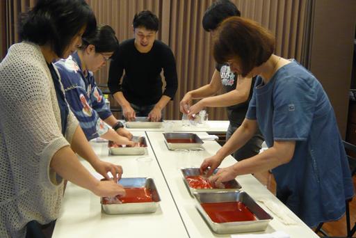 小松織物さんを講師に、ワークショップでストールの紅花染めを開催しました。お互いがどんな色になるだろうねと話しながら楽しいワークショップとなりました。出来上がりは、見事な色に染まり参加者の皆さんも大満足のようでした。このワークショップも残り3日。21日(月・祝)26日(土)27(日)午前11時・午後1時