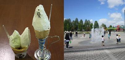 ▼こだわりのジェラート と 噴水広場