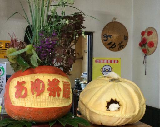 道の駅あゆ茶屋さんでは飼料用特大かぼちゃを使い米俵を作られました。そしてかぼちゃをかじった所には、ねずみが・・・見事な出来栄えです!ぜひあゆ茶屋さんへ足を運んで見てくださいね。(K)