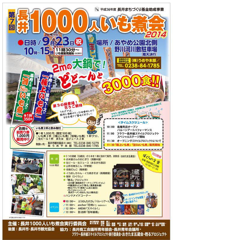 うめや本部 TEL:0238-84-1785 ■長井1000人いも煮会Facebook:https://www.facebook.com/1000nin