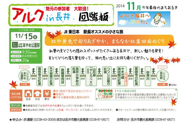 → 後藤屋肉店 → 長井小学校の紅葉 → 山形屋「やじろべえ」(昼食)