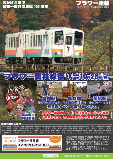 フラワー長井線は26日 終日片道100円でご乗車いただけます。