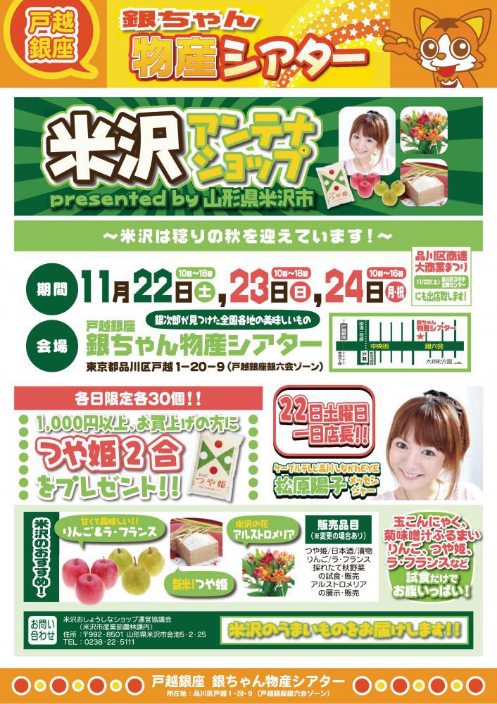 ▼米沢のアンテナショップ 戸越銀座、品川商連大商業まつり出店!【11月22日〜24日】