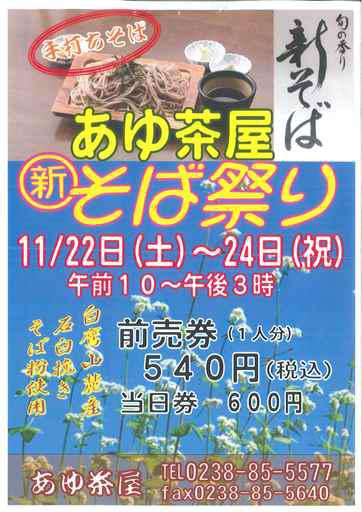 ◆あゆ茶屋 新そばまつり