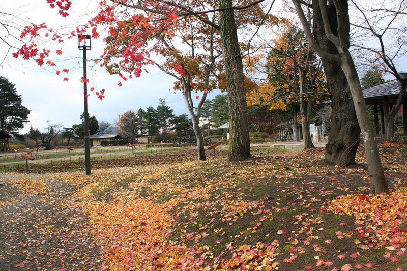 あやめ公園の高台広場はまだ紅葉期なのに、