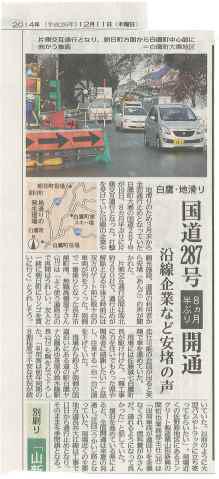 ▼国道287号片側交互通行になりました。