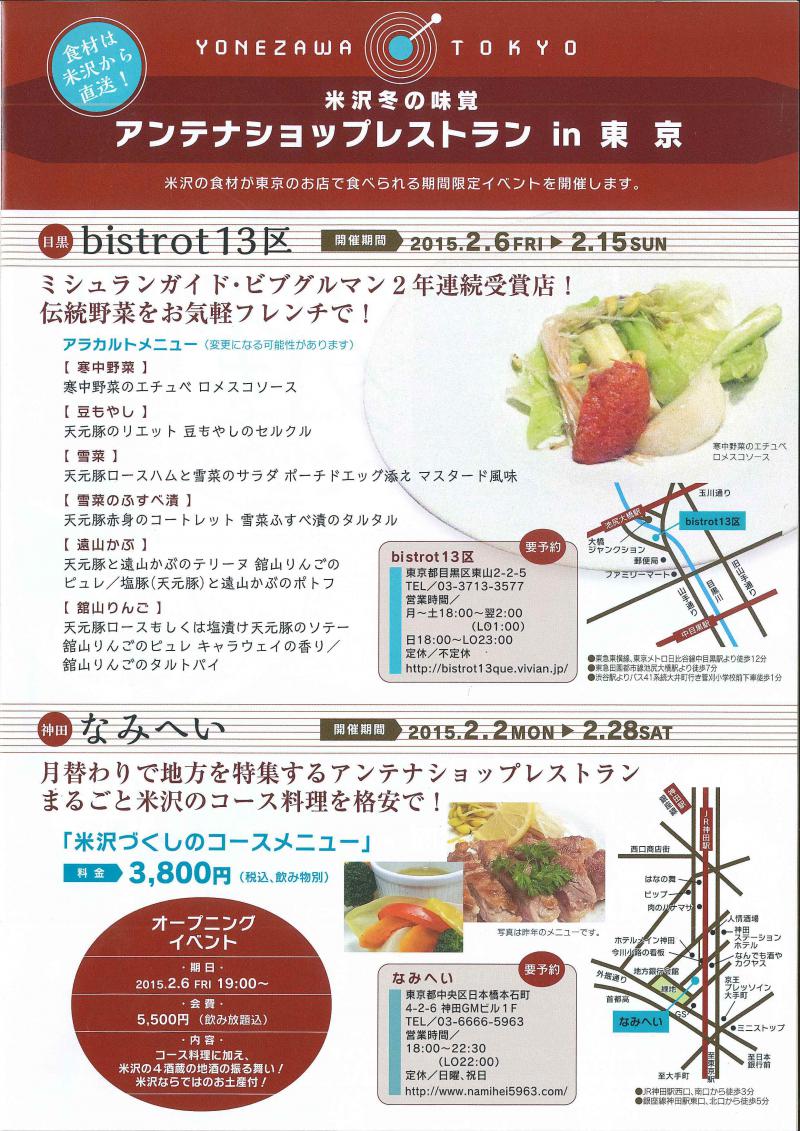 『米沢冬の味覚 アンテナショップレストラン in 東京』が