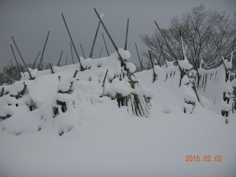 先日の天気の良い時に、再度雪囲いと囲いの間の雪片づけをしました。