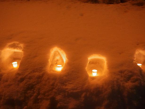 日が暮れだすと、灯かりがいっそうきれいに浮かび上がります。皆さん、足を止めてカメラを向けていました。