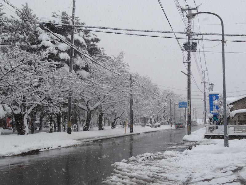 一昨日からの寒波で長井市内は真っ白の雪景色に逆戻りしました。