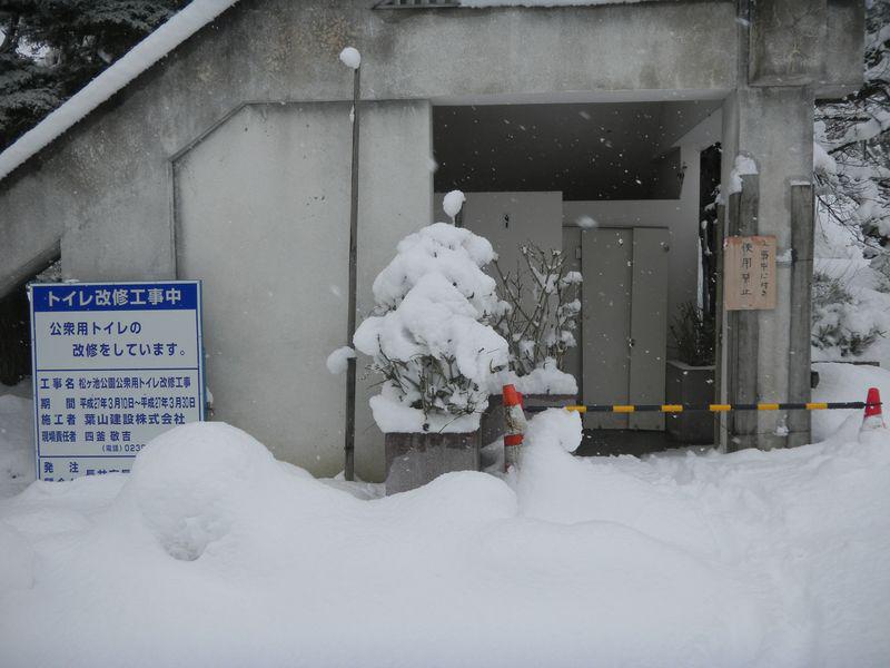 ※トイレ前の道は除雪されておりますが、こちらは工事用に除雪したものです。