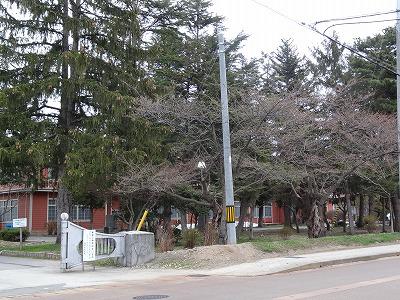 上の写真(↑)は、長井小学校第一校舎前の桜並木です。