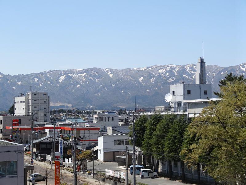 遠くの山々には残雪が見えますが、所々新緑も見え始めました〜。