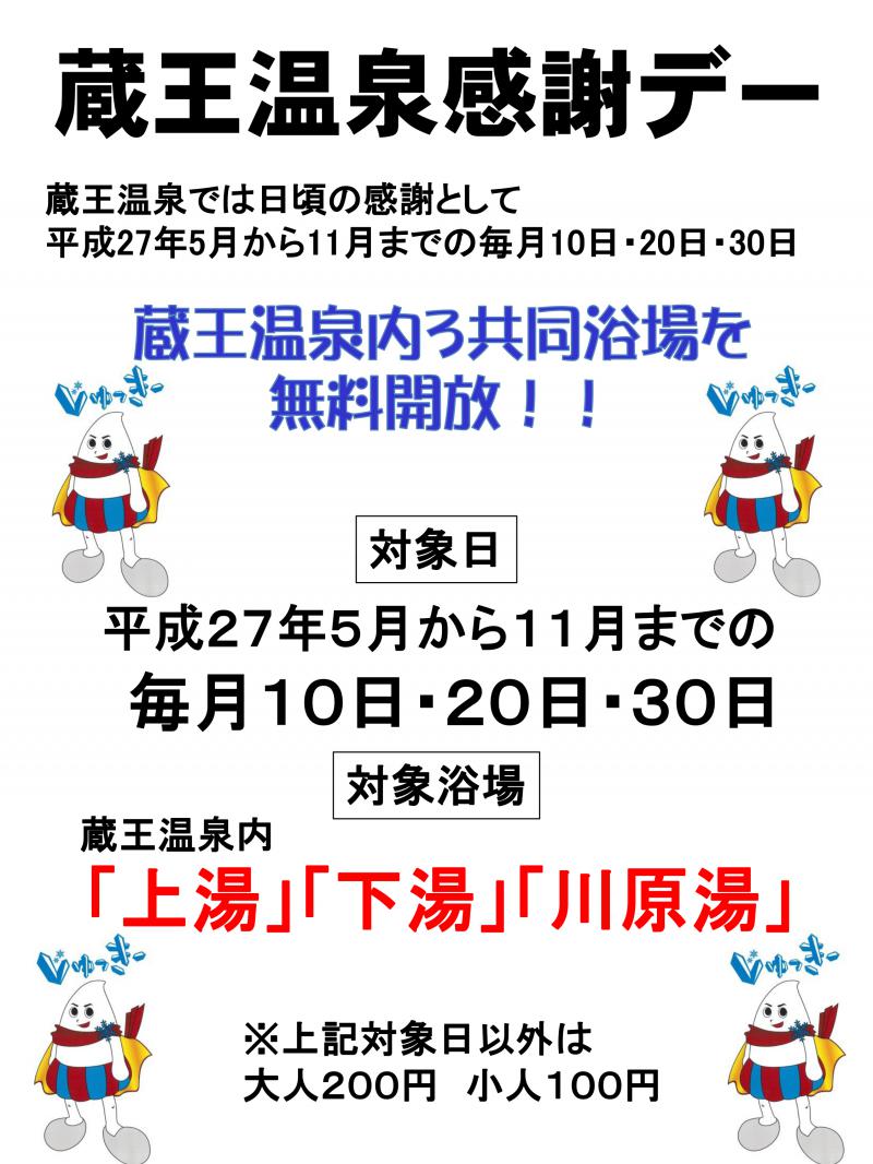 ▼毎月10日・20日・30日は『蔵王温泉感謝デー』【5月〜11月まで】