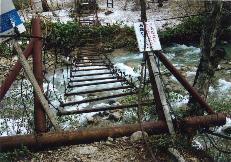 祝瓶山荘から祝瓶山等へ登る際に渡る「角楢吊橋」が、