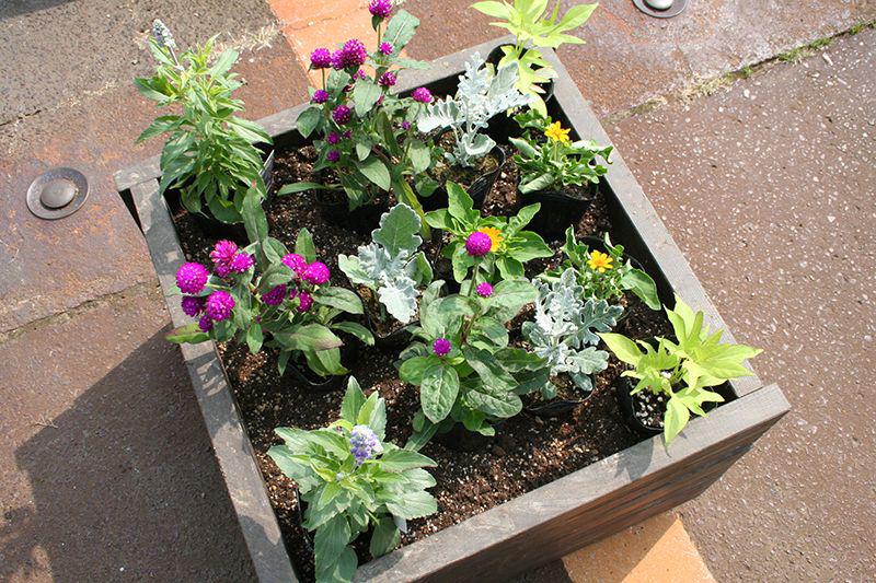 「コンテナのまわりは空気がよく通るため、端につけて植えるといい!」