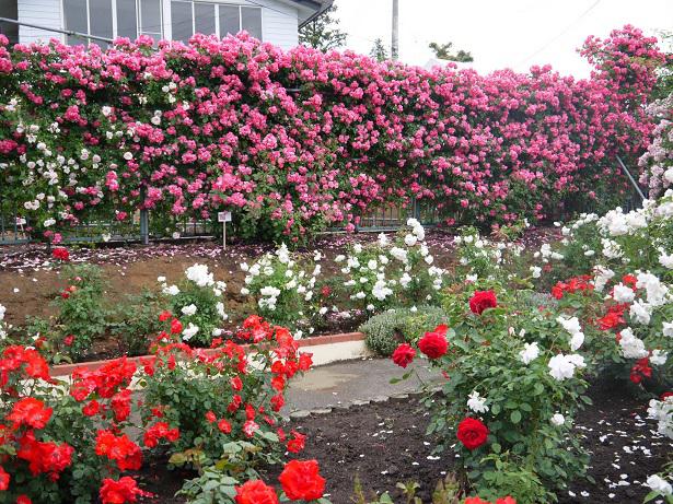少し肌寒い日です。園内のバラは、雨や風にあたって少し散ってしまったところもありますが、まだまだ見頃です。週末に開催される撮影会までは、このままの状態でいて欲しいところです。
