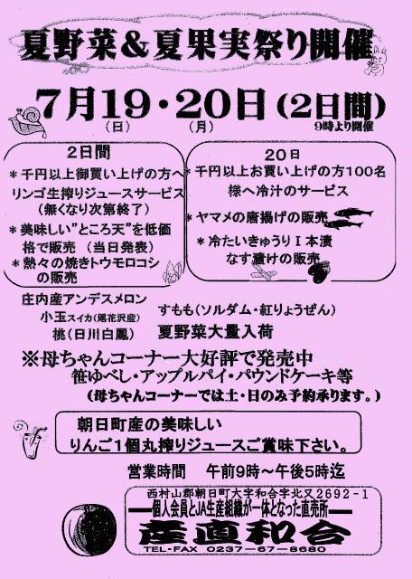 ▼<産直和合>7/19・20 夏野菜&夏果実祭り開催