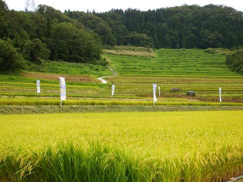 日本棚田百選に選ばれている『大蕨の棚田』9月3日現在の棚田は秋空の下で黄金色に輝いています。重たそうに下をむいた稲穂がまもなく収穫をむかえます。9月下旬から稲刈りはじまり、10月上旬くらいまで稲ぐいが立ち並ぶ風景を見ることができます。 また、9月12日(土)は、大蕨棚田再生事業として、山形市内のダンススタジオ「DanceSpace(ダンススペース)」によるダンス公演"大地の声が聴こえるかい“が行われます。 日 時 9月12日(土) 17:00〜 (小雨決行) 場 所 山辺町大蕨棚田の田んぼ 問合せ先 山辺町役場中支所 山辺町大字大蕨1164−1 TEL023−666−2113