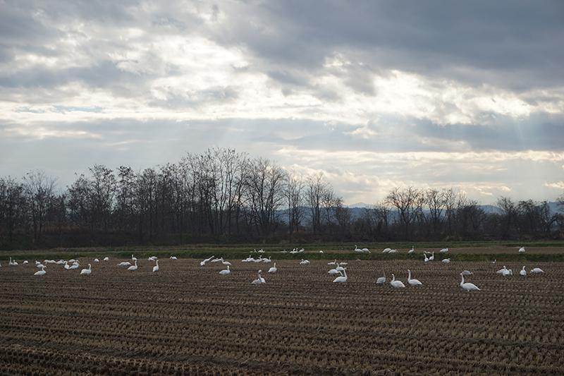 置賜地方の田んぼにもたくさんの白鳥たちが飛来してきます。