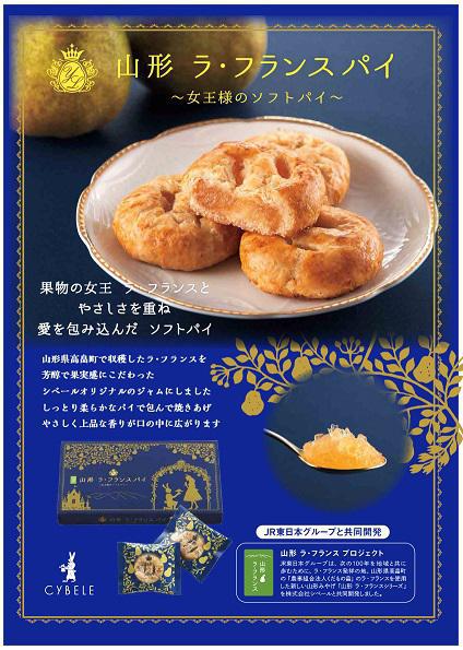JR東日本グループ様、株式会社シベール様が共同開発した山形ラ・フランス ガレットと山形ラ・フランス パイの販売をJR高畠駅(高畠町太陽館)売店で販売を開始しました。この商品は、120年以上の歴史を持ち、新たな農業従事者の育成にも取り組む農業法人くだもの畠 様の高畠産ラ・フランスを使用したお土産です。高畠町の新たな お土産品として、是非ご食味してみてはいかがでしょうか。