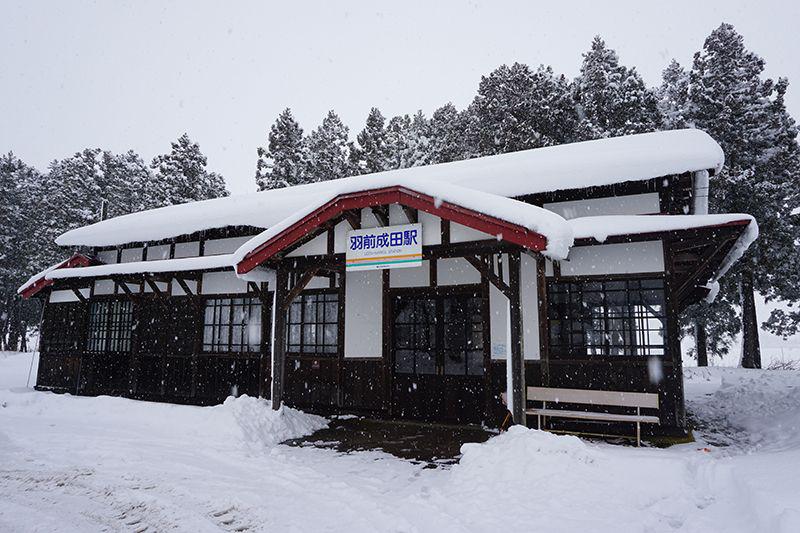 雪景色が似合うとっても趣ある木造のこの建物は、現役の駅舎です。