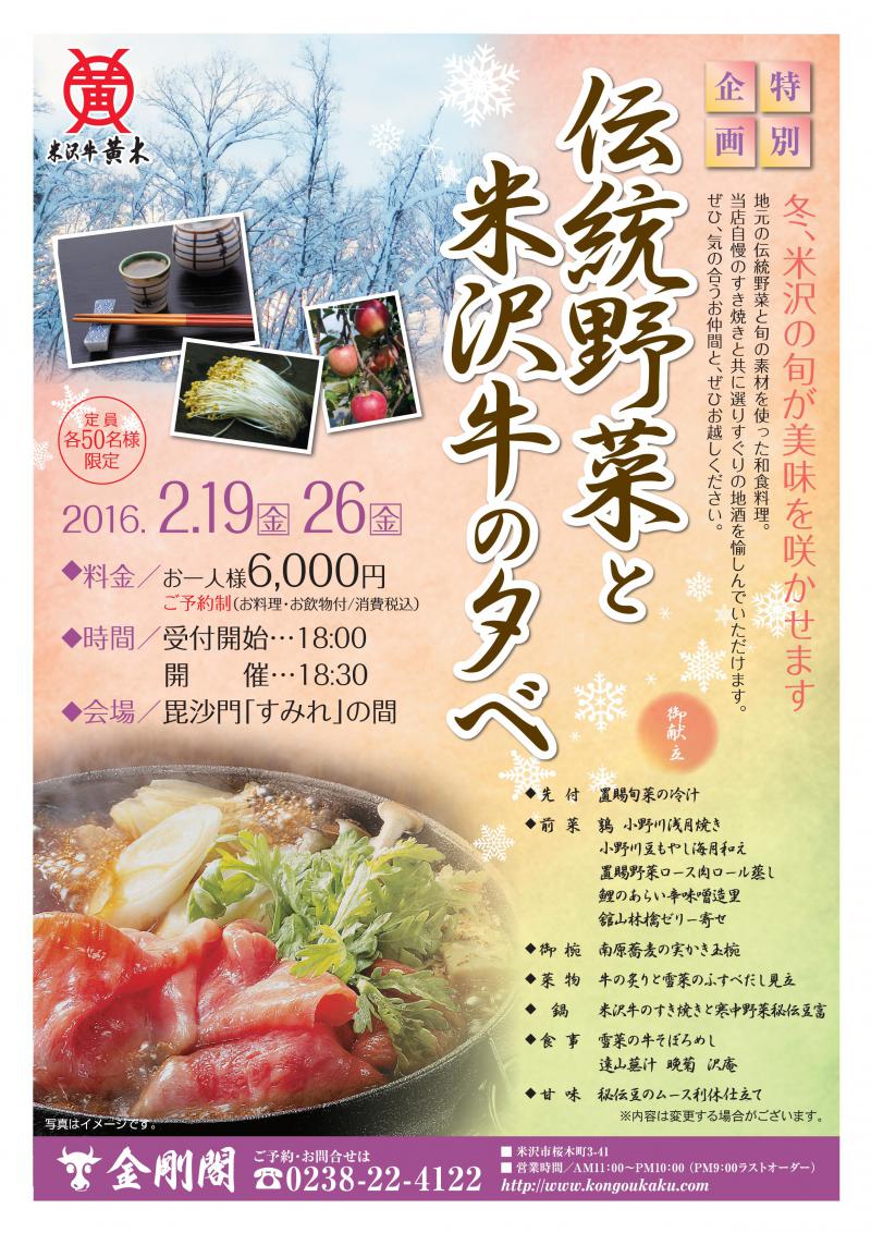 ▼伝統野菜と米沢牛の夕べ 2月19日 26日 開催!