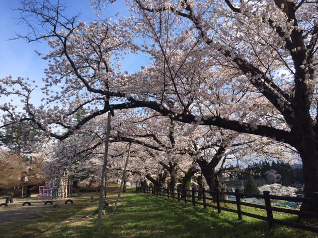 本日の白鷹町は少し雨模様。早朝は風が強くて心配しましたが、変わらずキレイな見頃です。スポーツ公園の桜並木です。24日は地元のイベントもありますので、そちらも楽しみにいらしてください!